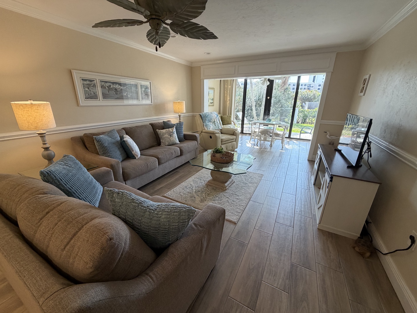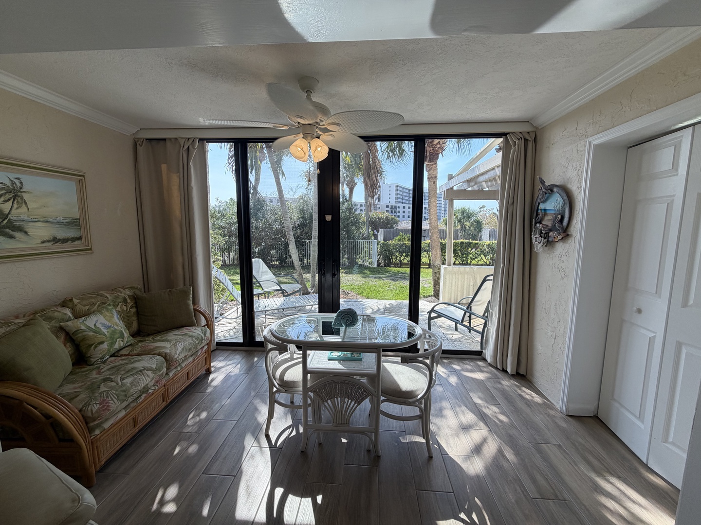 Enjoy all that Siesta Dunes has to offer while having all the comforts of home available in our condo. With easy, ground level access, this spacious Condo has a private patio and lanai for outdoor activities and dining, recreation or sunbathing. Gas grills are only a few steps away. The enclosed Lanai is furnished for casual dining or reading the morning paper while enjoying the beautiful Florida scenery. The unit has tile throughout. The living area has a new SmartTV with a fire stick to stream. The modernized kitchen has all new appliances and Zodiaq counter tops. The Guest bedroom has new furniture and a flat screen TV. The master bedroom has a flat screen TV, stereo, CD player, and VCR. Free Internet Wifi and cable is provided. The large deck by the beach is ideal for cooking, sunbathing or watching the sunset. The beach is only a short walk away. The complex has tennis courts, a heated salt water pool, hot tub, beach chairs and covered parking.