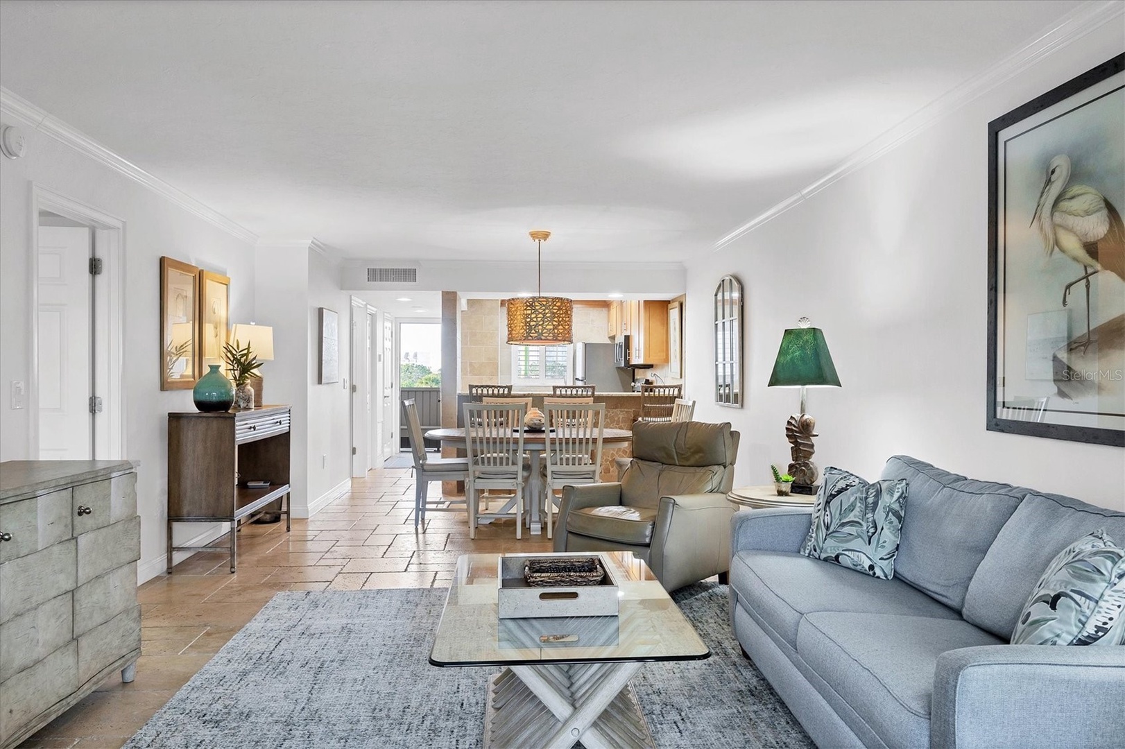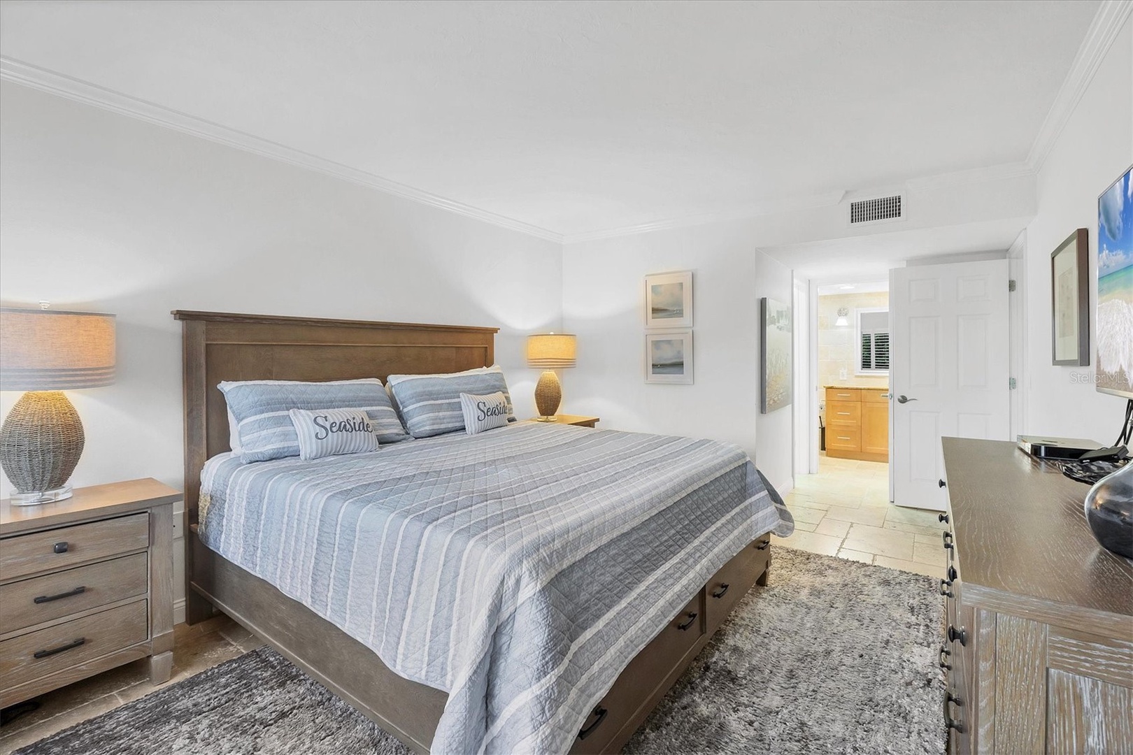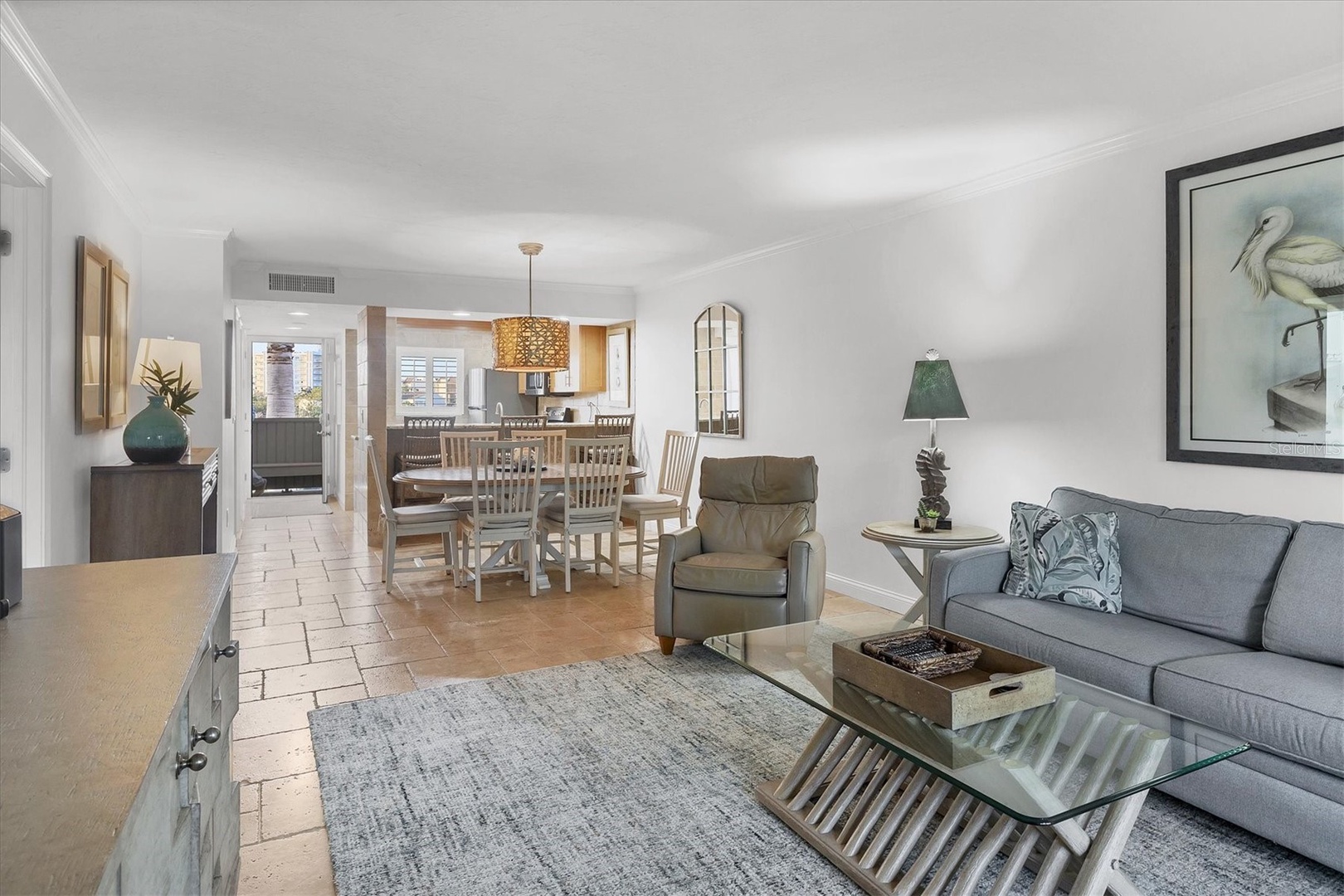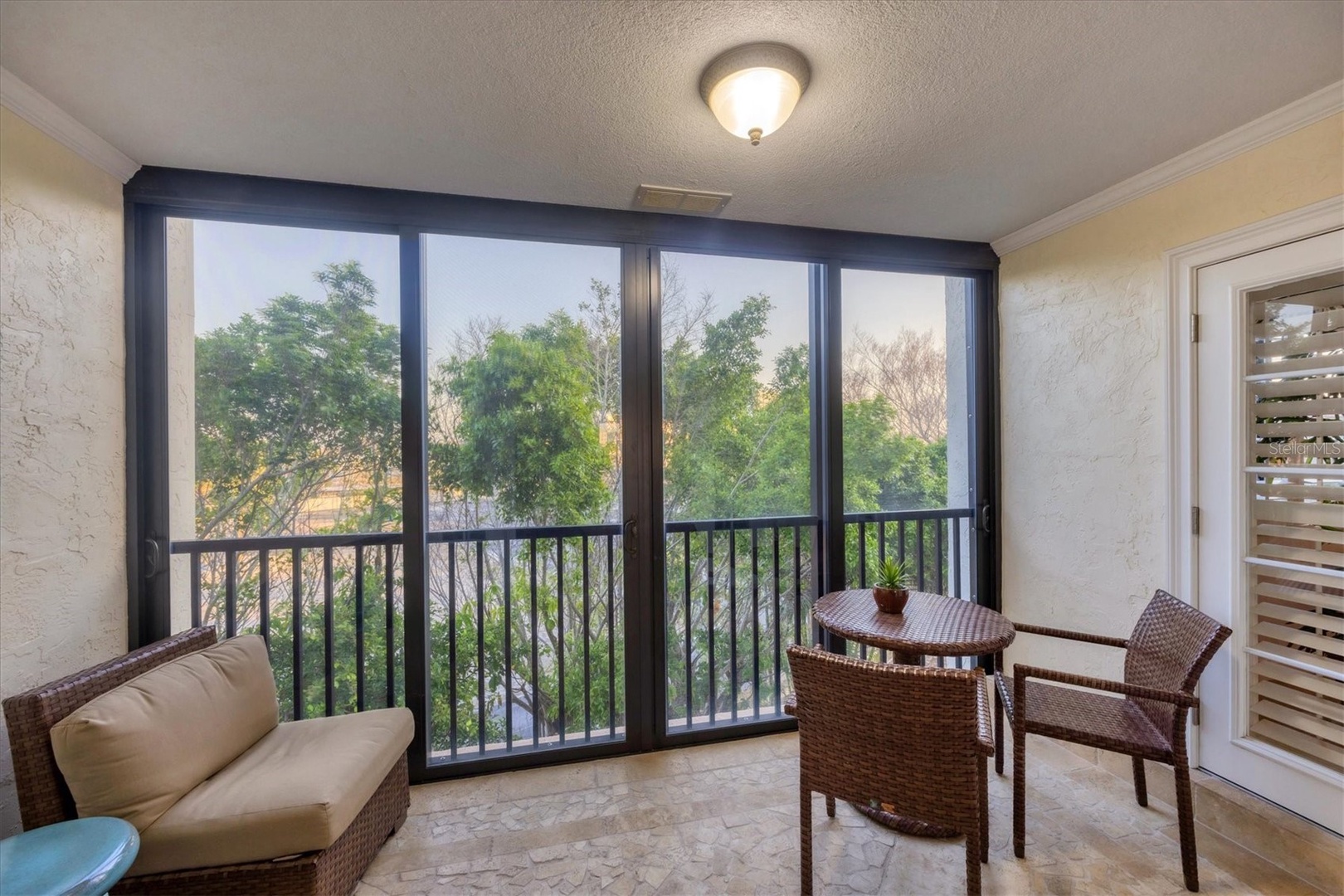 Beautiful, remodeled and professionally decorated 3rd floor garden view condo. Tile floors throughout, granite counter tops and maple cabinets. French doors lead to the glassed door lanai with partial gulf views. The unique second bedroom and bath can be closed off to make them another private suite.