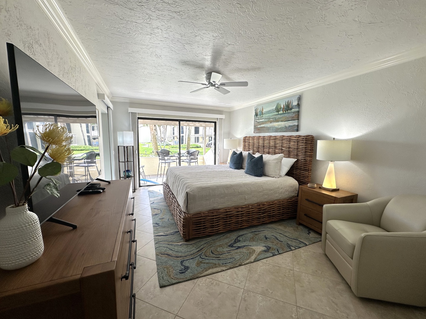 New to the Rental Program as of January 2022. This unit's kitchen is fully equipped updated with stainless steel appliances, there is tile throughout the unit. This nautically inspired unit is located just steps straight out to the pool from this updated ground floor unit! Sleeping 5, the master bedroom has a king-sized bed and a queen in the guest bedroom and a twin size pull out on the lanai, this condo is perfect for the family. Conveniently located, and just a couple steps to the beach.