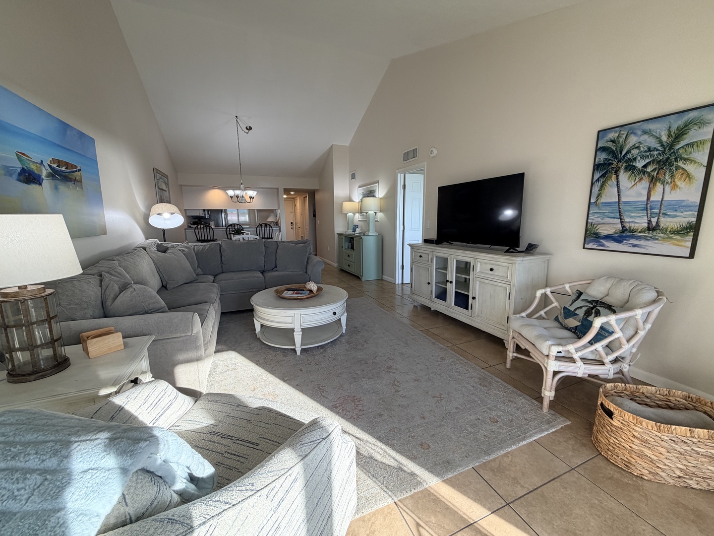 Beautiful ocean views from this island inspired condo. This unit is centrally located giving an elevated unobstructed view of the gulf. It has two bedrooms and 2 baths. The main bedroom has a king sized bed and the guest bedroom is furnished with two twin beds. The kitchen is fully equipped. Easily accessible to all condominium facilities.