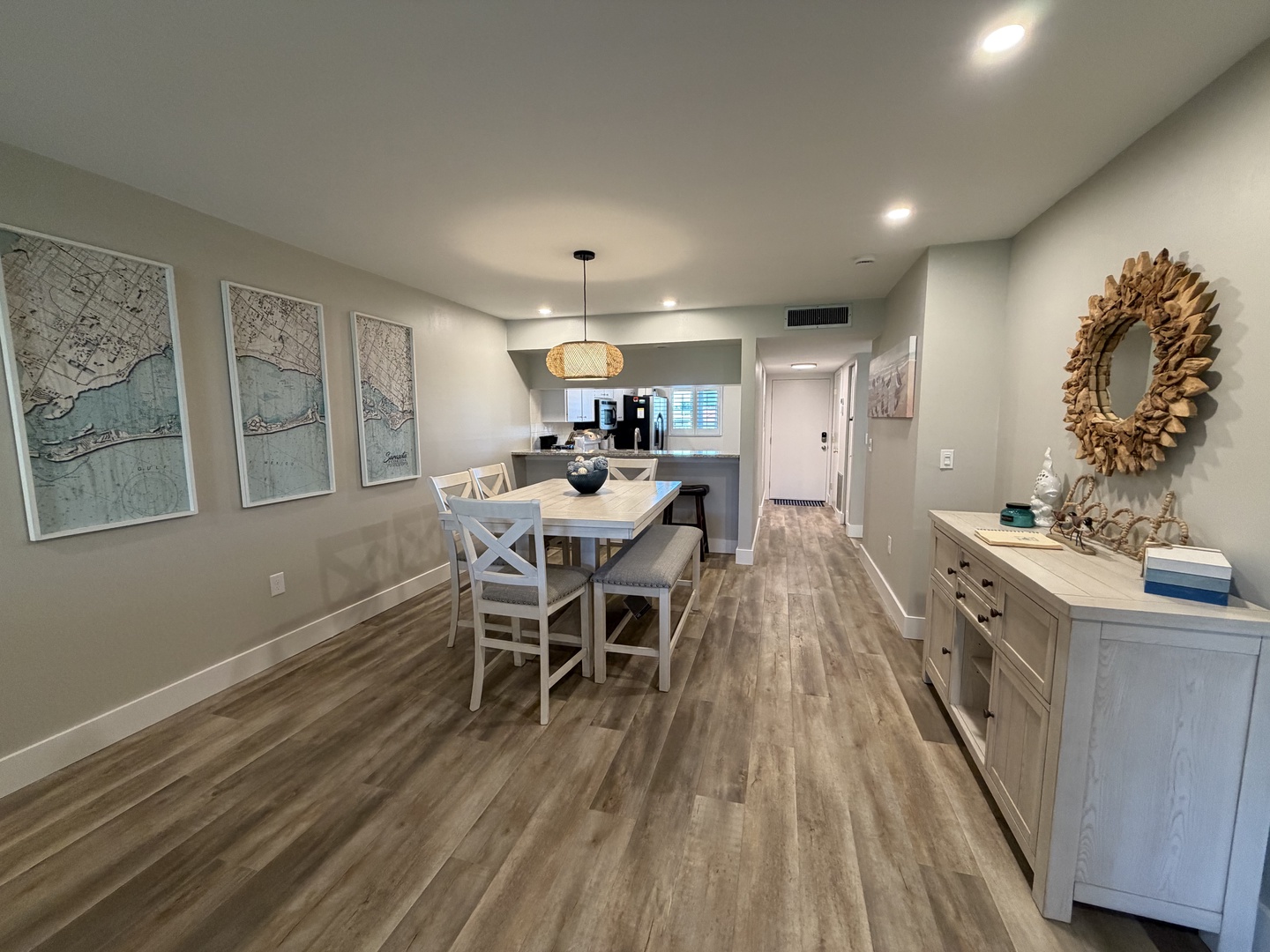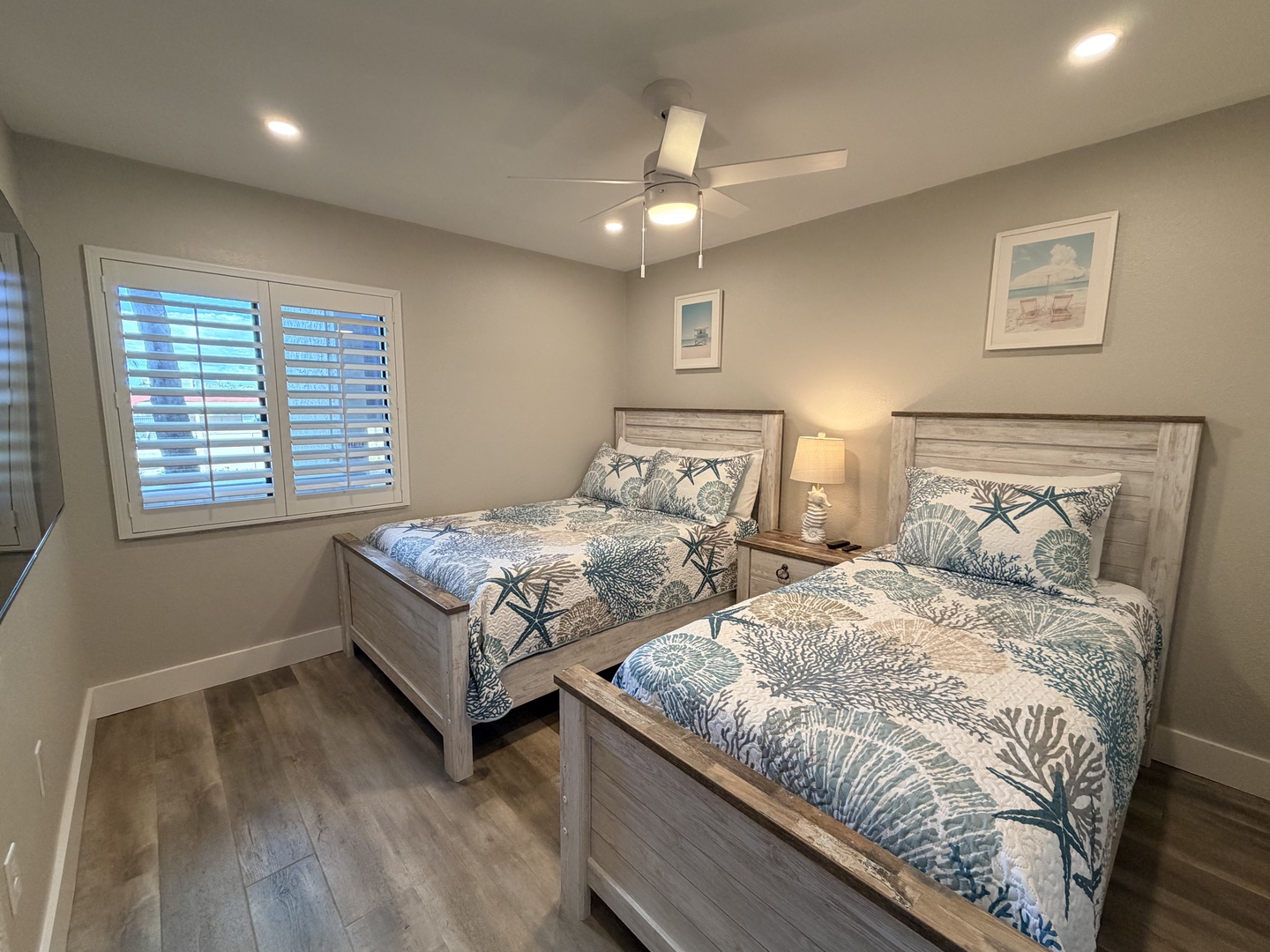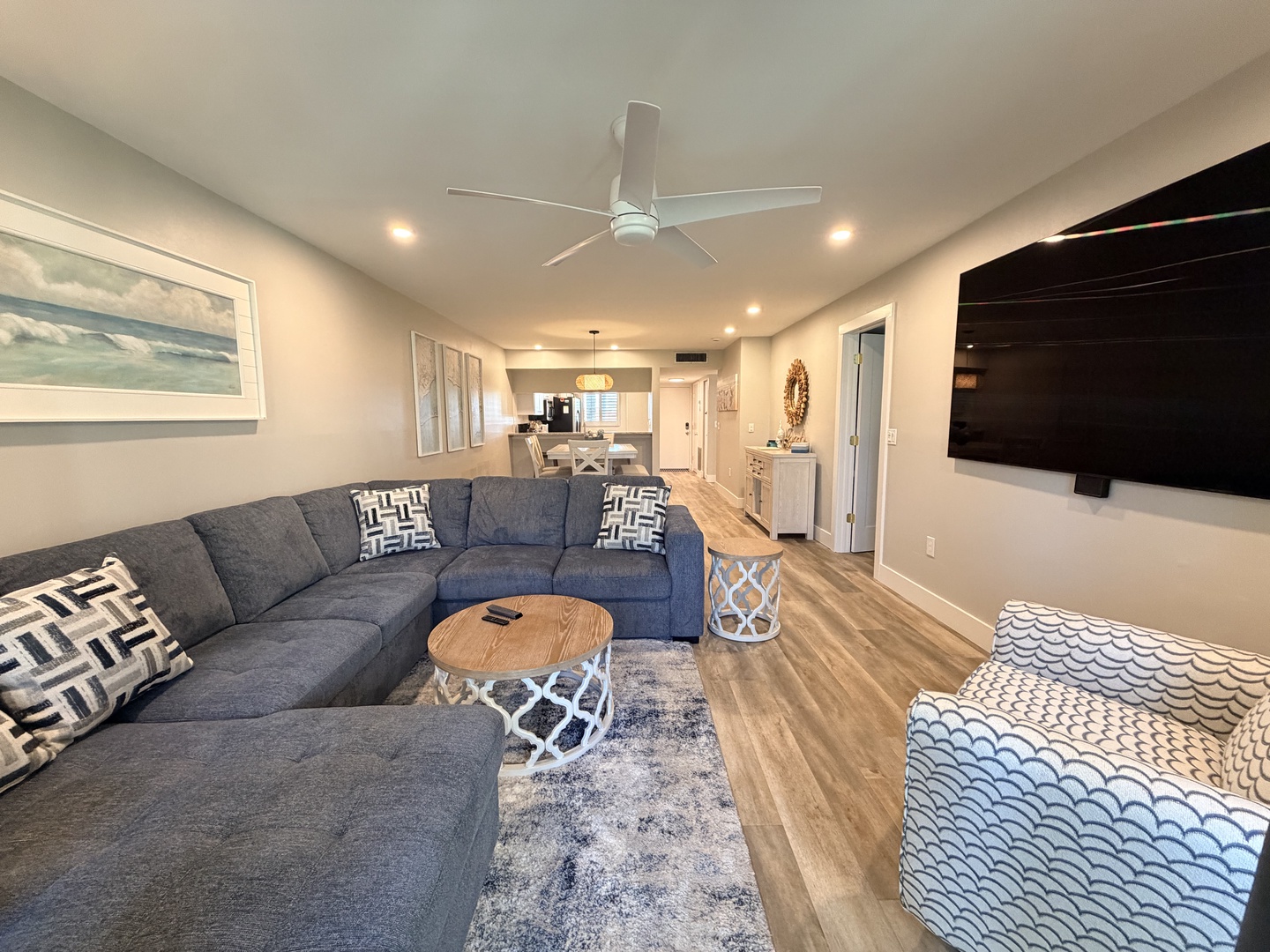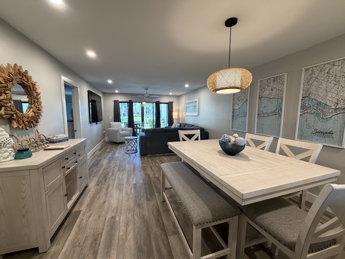 Enjoy this newly renovated ground floor gulf-view unit, just steps to the pool and a short walk past the sun deck to the white sandy beach. This unit comfortably sleeps six: the master bedroom has a king bed, the guest bedroom has a twin bed and a full bed, and the living room has a sectional sleeper sofa. The kitchen is fully equipped, and both the master bedroom and guest bedroom closets have custom closet systems. This unit has an outside patio area off the master bedroom and a screened-in lanai off the living room. All of the comforts of home for your Siesta Key vacation. *Kitchen and lanai to be remodeled early Summer 2026.*